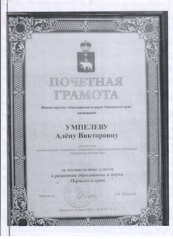Почетная грамота Пермского края, 2023г.